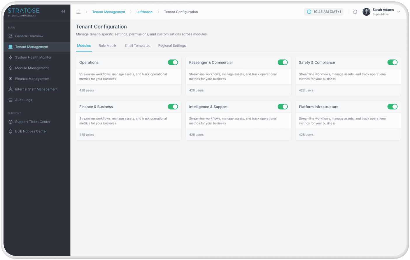 The platform is a unified Aviation Operations Management System that combines ERP, CRM, and a Mobile App to help airlines and aviation companies manage staff, operations, and compliance from one central system. It is built to support multiple airlines and aviation organizations, allowing administrators to onboard companies and aviation staff while maintaining full visibility across technical, operational, and crew functions.