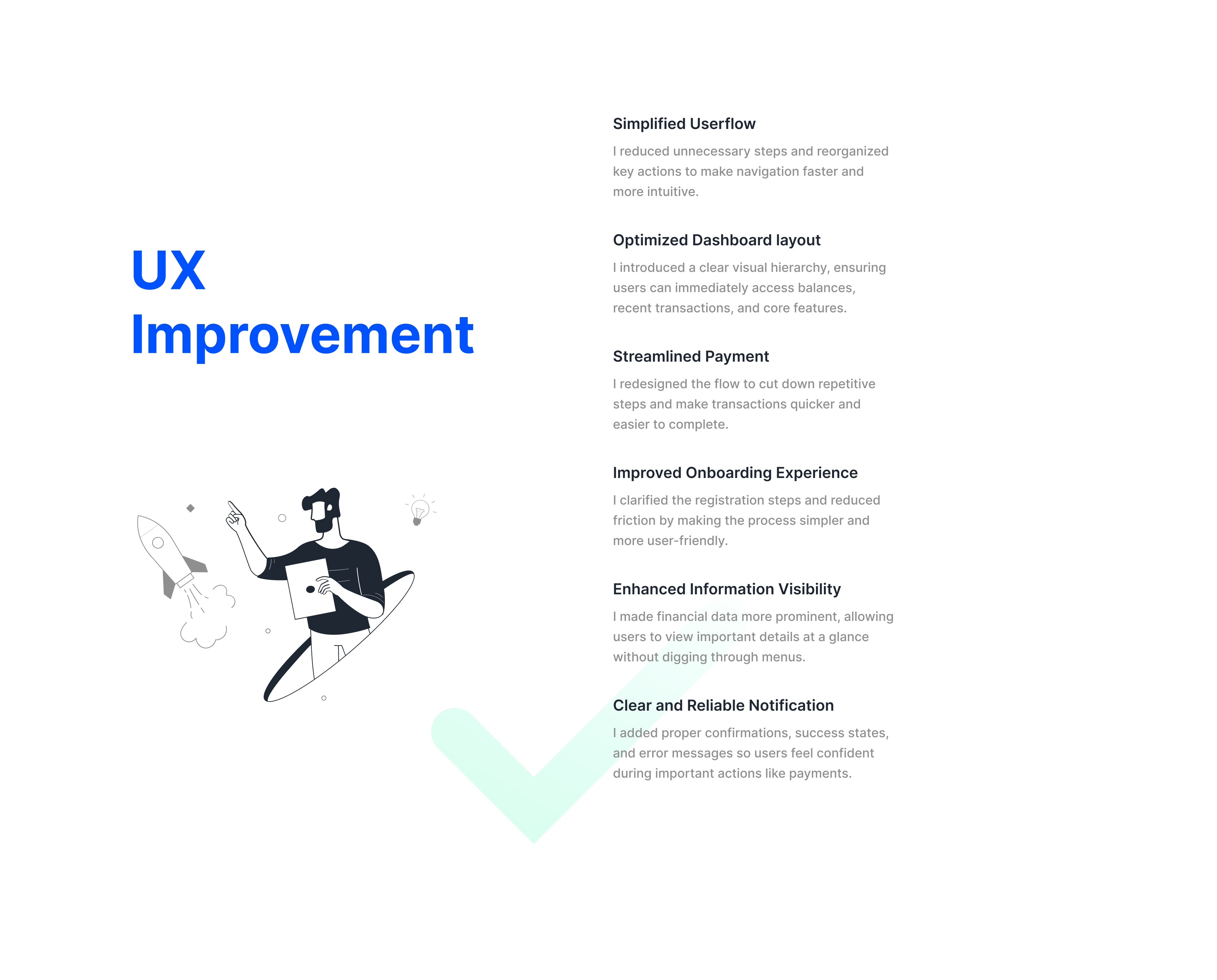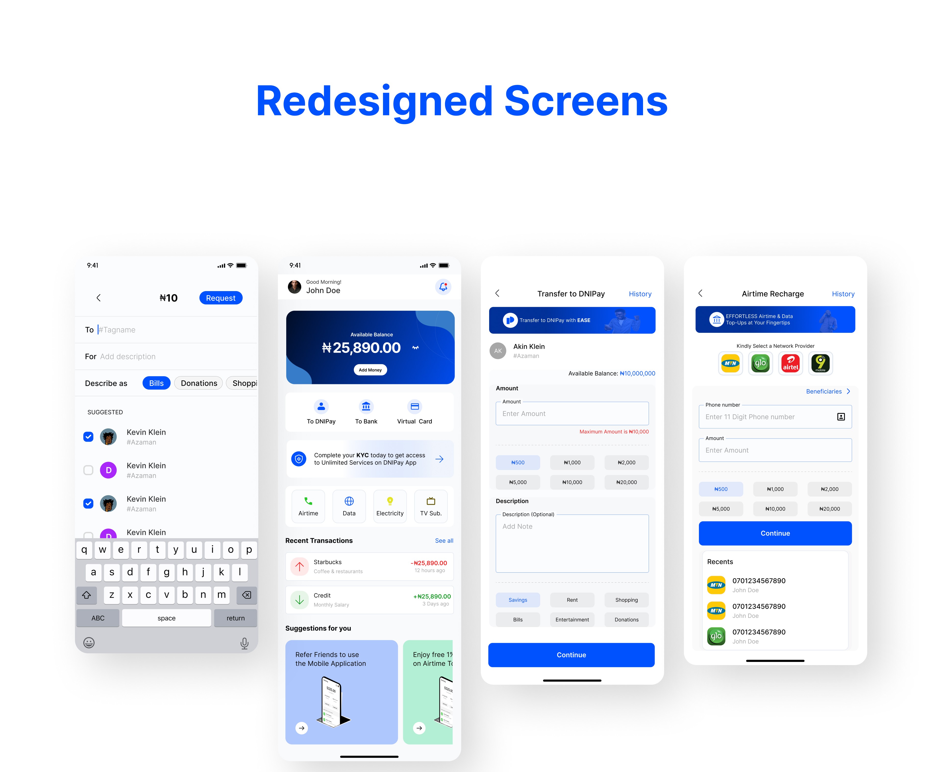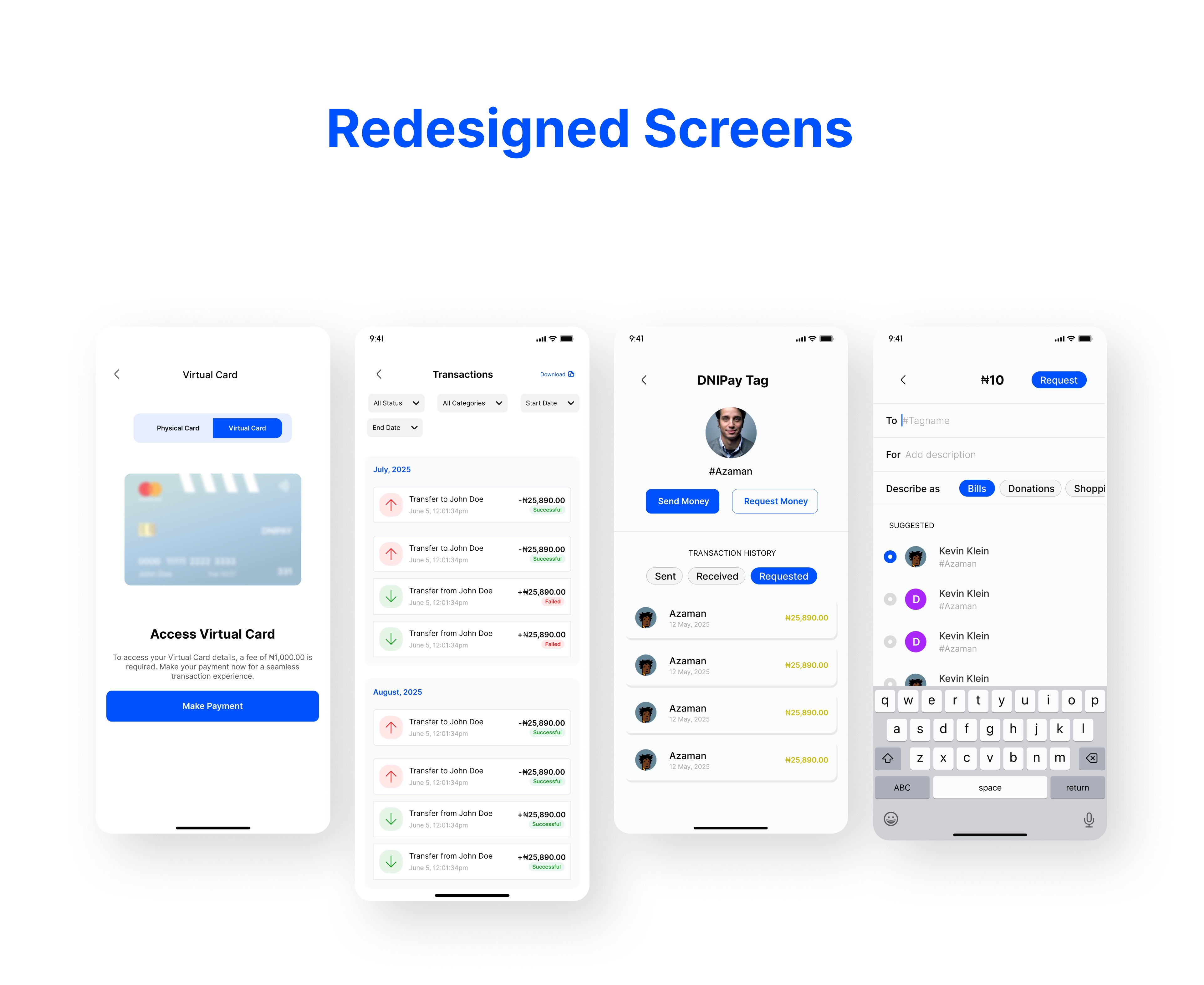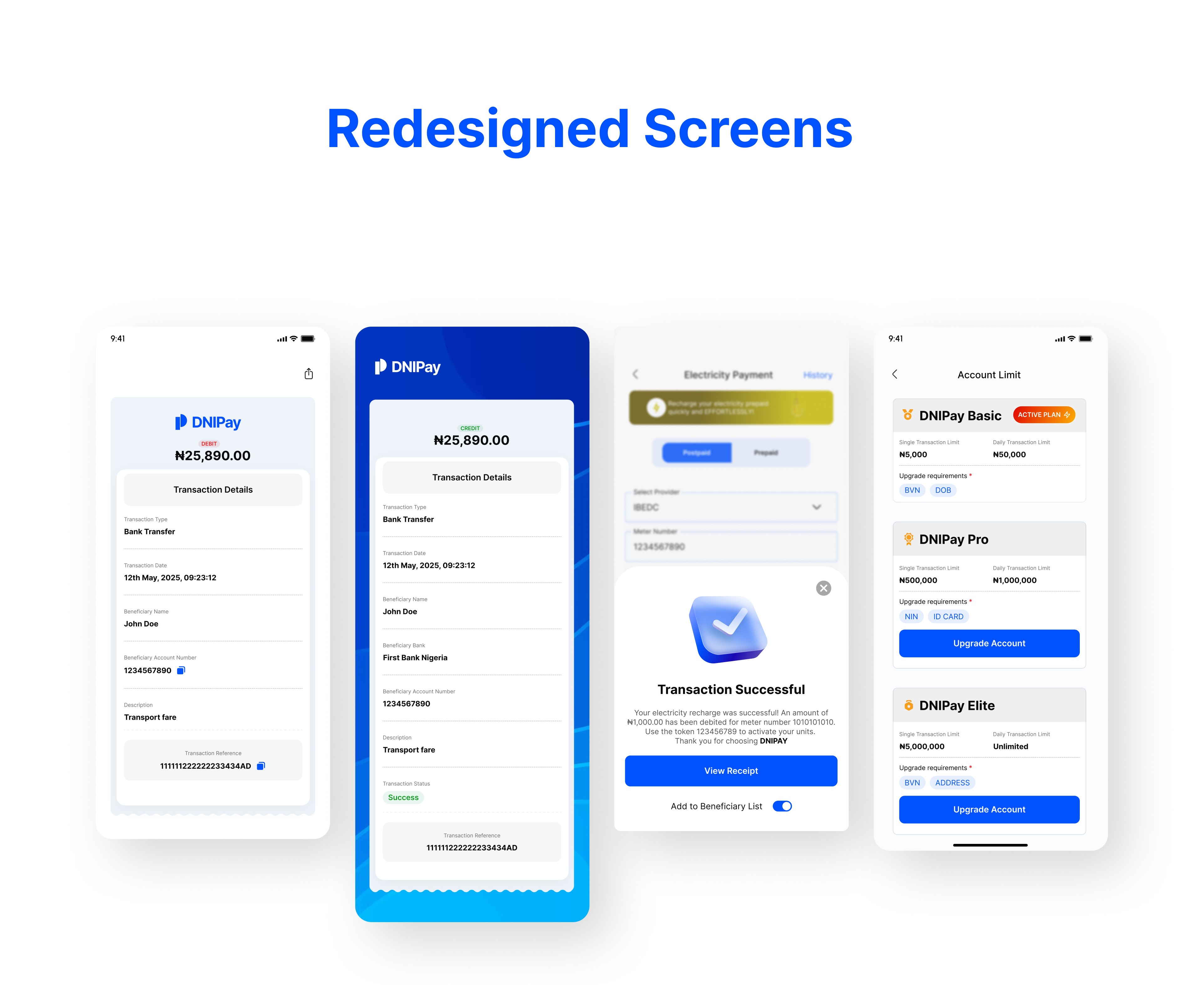 I redesigned the DNIPay app with a user-centered approach, simplifying navigation and restructuring user flows to reduce friction. I created a clear visual hierarchy on the dashboard, improved the visibility of key financial information, and streamlined the payment and transfer processes. The onboarding experience was made more intuitive, and consistent UI components were introduced to unify the overall visual design. Additionally, clear success, error, and feedback states were added to enhance user confidence when performing transactions. These improvements collectively transformed the app into a more intuitive, modern, and trustworthy fintech experience.