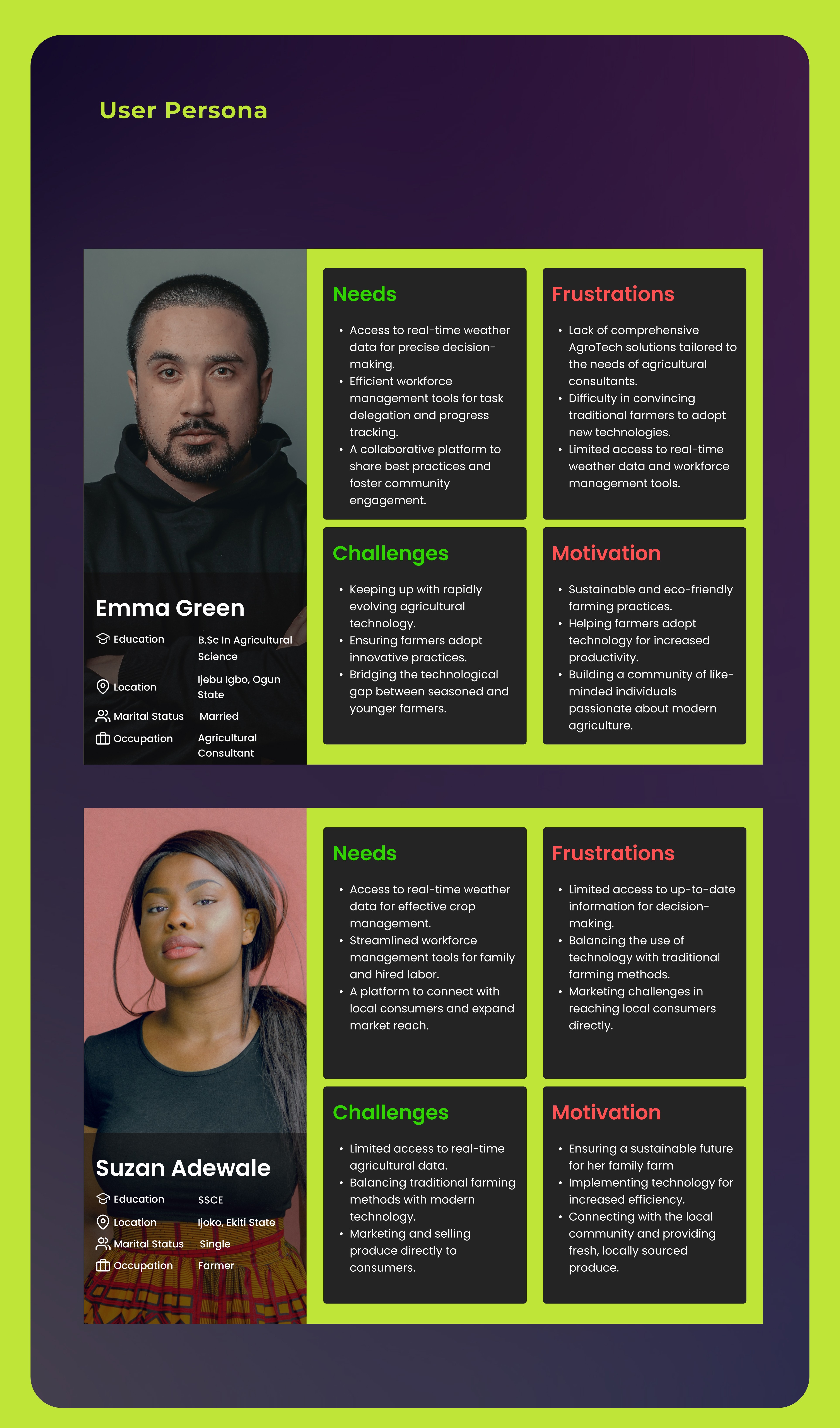 My role as the designer encompasses user research, wireframing, UI design, collaboration with developers, and usability testing, all aimed at creating an intuitive and visually appealing platform. The ultimate goal is to empower farmers, enhance productivity, and contribute to the long-term sustainability of the agricultural industry through the adoption of innovative AgroTech solutions.