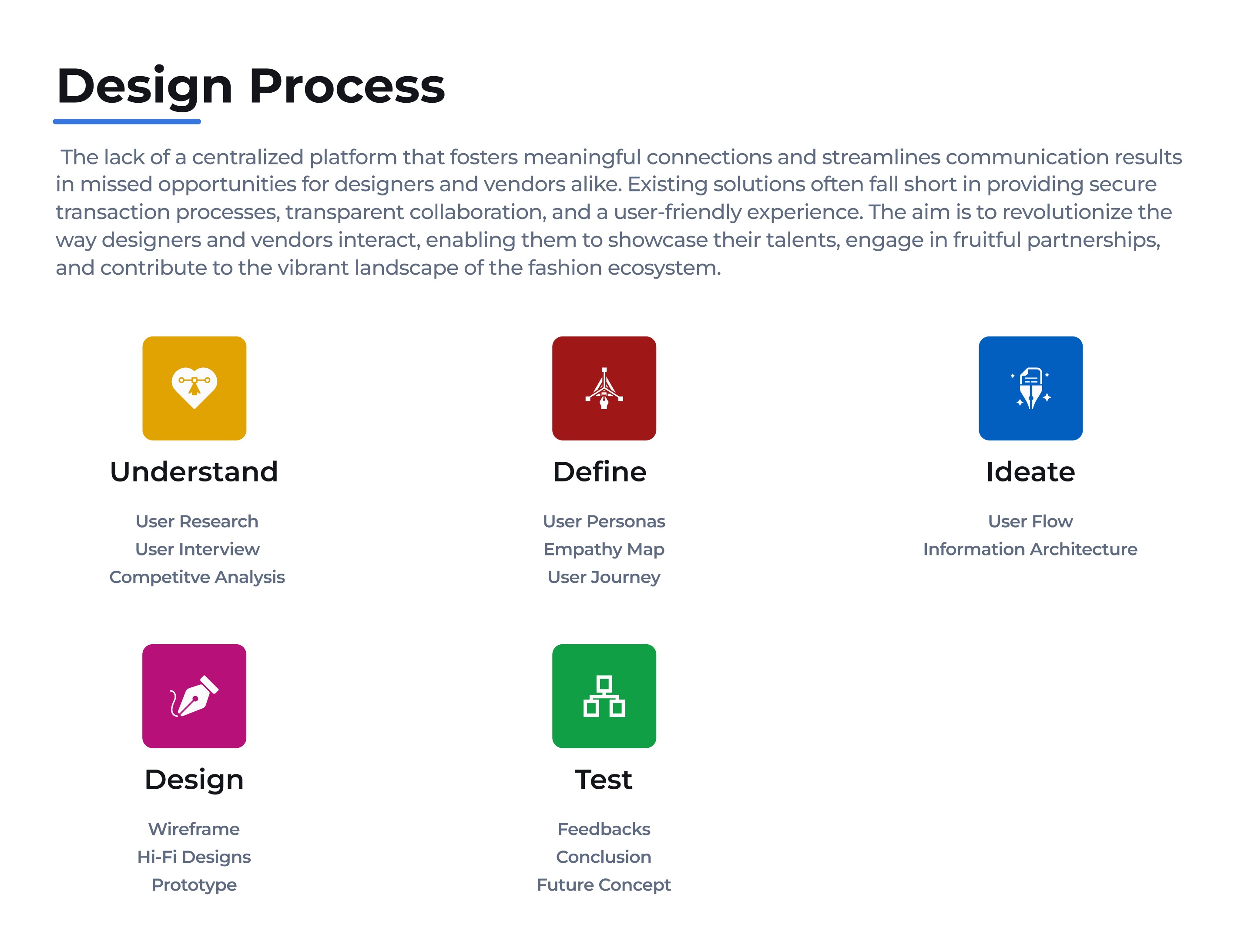In the dynamic landscape of the fashion industry, the traditional process of connecting fashion designers, clients, and tailors often lacks efficiency and transparency. Existing e-commerce platforms cater to either designers showcasing their creations or retailers selling finished products, leaving a significant gap in the market for a comprehensive solution that seamlessly integrates all stakeholders. The absence of a centralized platform leads to disjointed communication, delayed timelines, and suboptimal outcomes for both designers and clients.