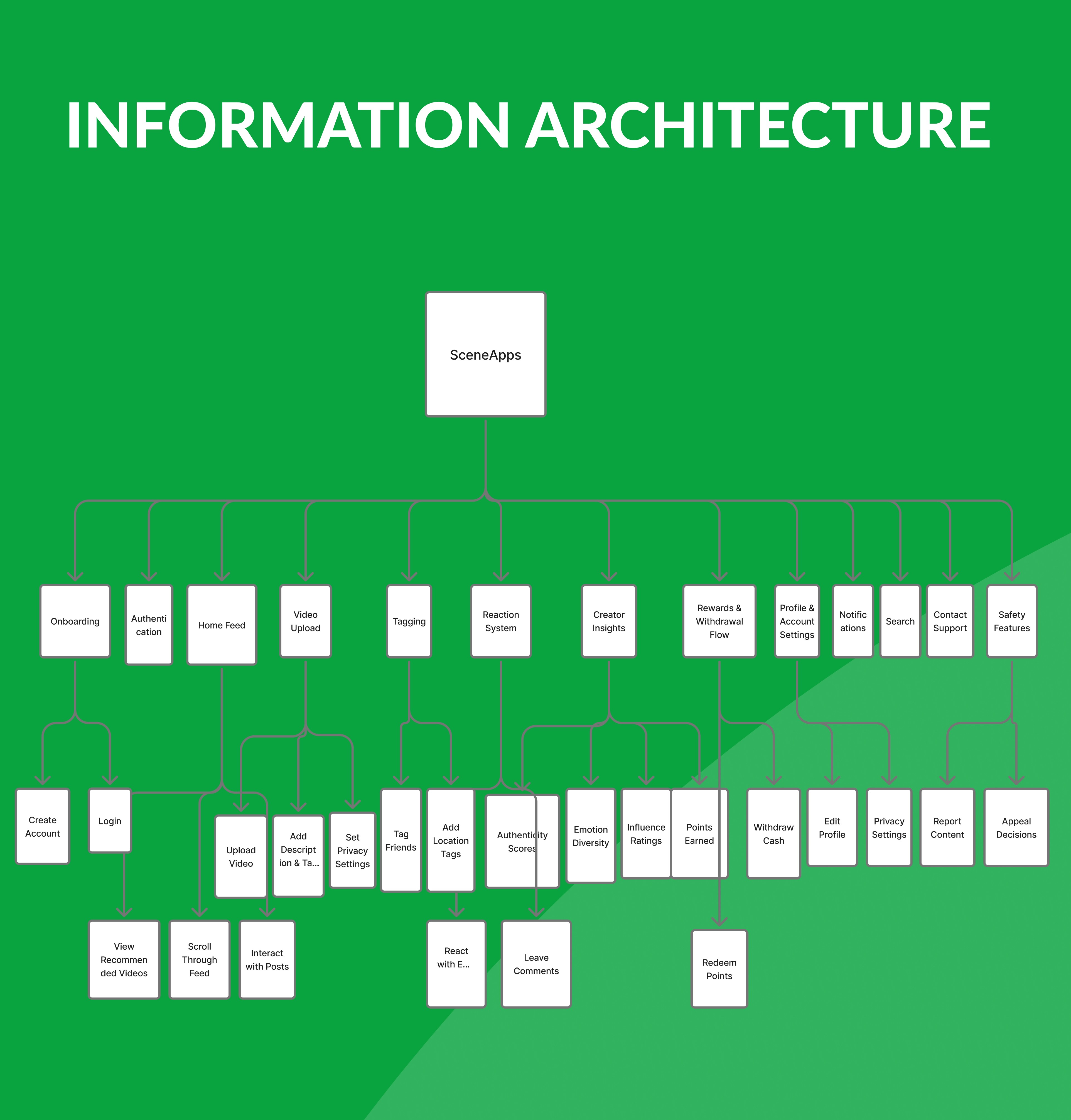 The project involved refining the core user flows, clarifying reaction insights, improving content identity systems, designing a clean reward experience, enhancing notification logic, and ensuring users understand how their data and reaction scoring works. SceneApps aims to combine creativity, meaningful reactions, and reliable rewards to create a safer, more trustworthy social space for both creators and reactors.